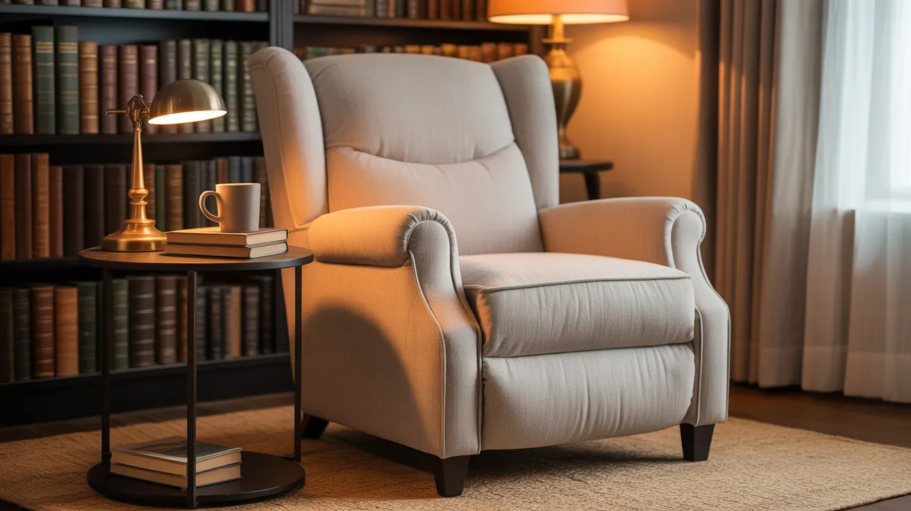 Choose lower tables (18-22 inches) to match the sloped arms on most accent chairs and recliners. This height keeps drinks and books at a natural arm position.