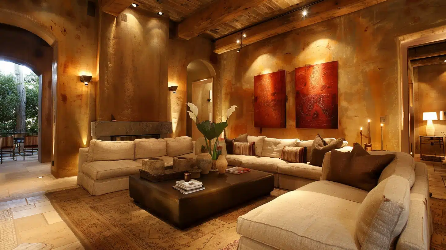 Enhance Your Living Room with Venetian Plaster Walls and Creative Lighting Ideas