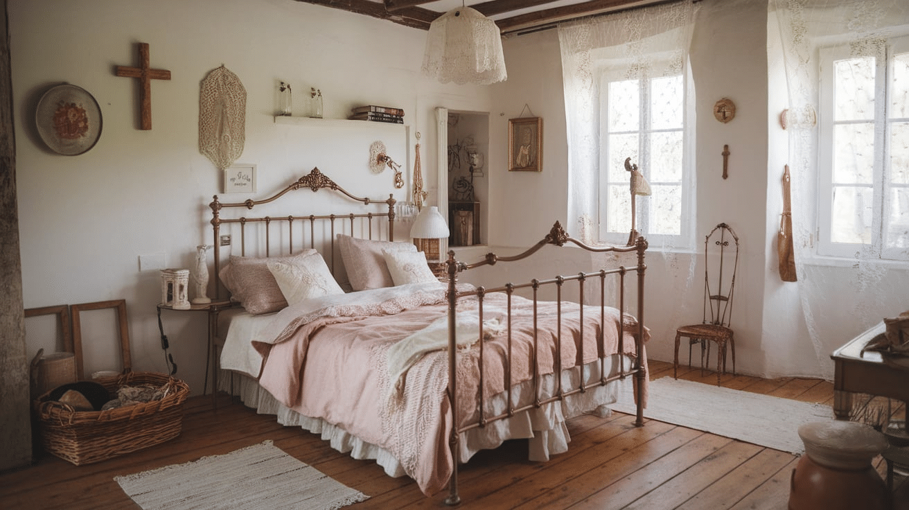 - Antique Furniture: A painted wooden dresser, bedside tables with carved details, or a vintage vanity add character. Look for pieces with a timeworn feel.