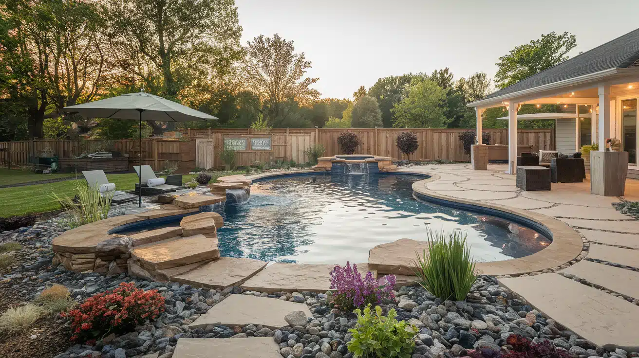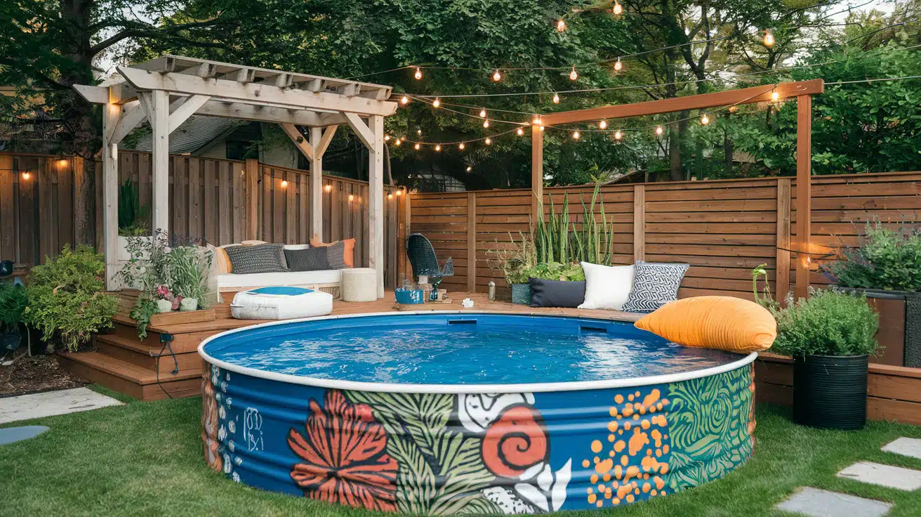 For privacy, add bamboo screens or tall grasses. Install flat stones or pavers around the pool to create a walking path and prevent mud. Small pergolas offer shade during hot days.