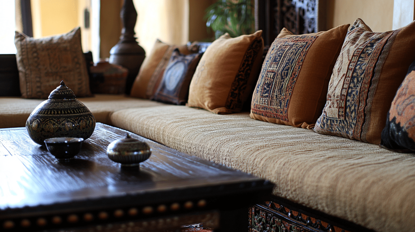 - Incorporate low seating: Try floor cushions or a low sofa to capture that relaxed Moroccan vibe.
