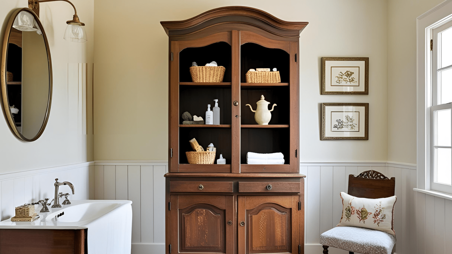 - Best For: Bathrooms lacking built-in storage or those wanting to add another layer of farmhouse texture.