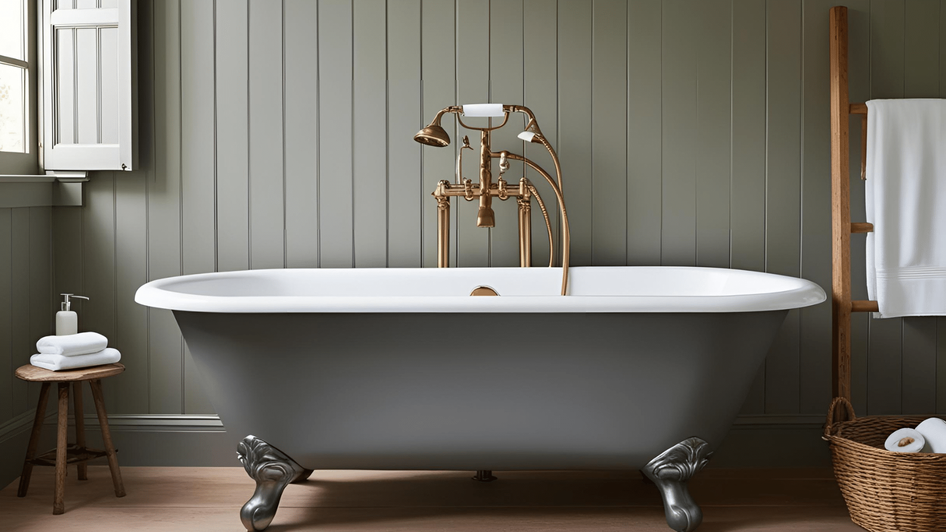 A claw-foot tub stands as the ultimate farmhouse luxury item, combining old-world charm with modern comfort.