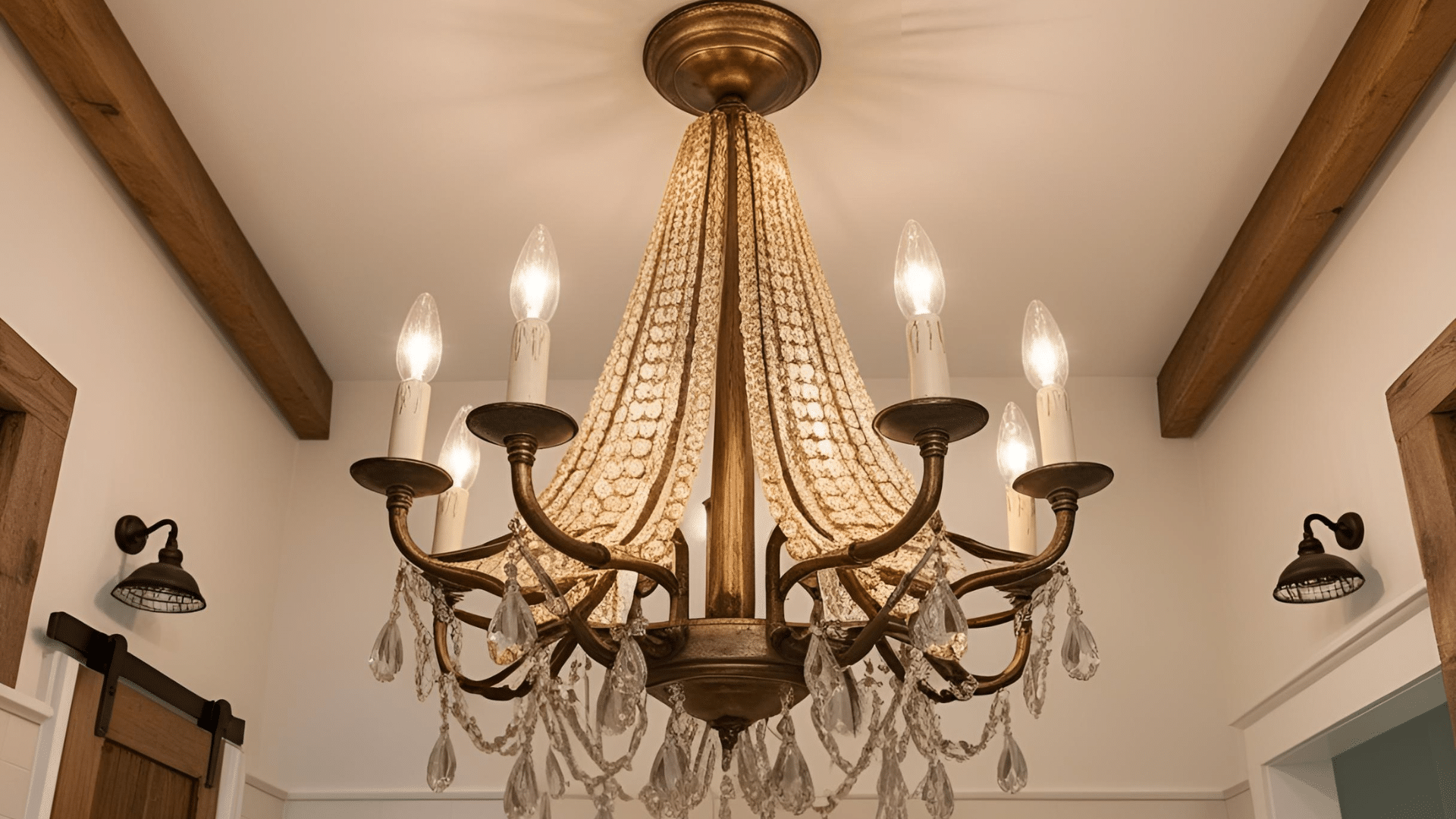 - Best For: Adding authentic farmhouse character overhead or alongside mirrors.