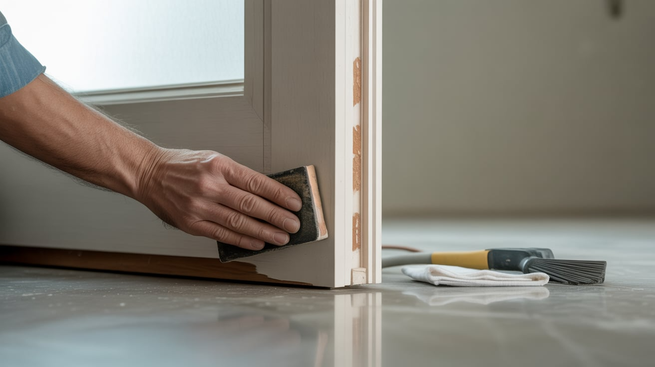 Once the trim is secure and dry, lightly sand around the edges. This helps remove any rough spots and makes the surface smooth for painting.