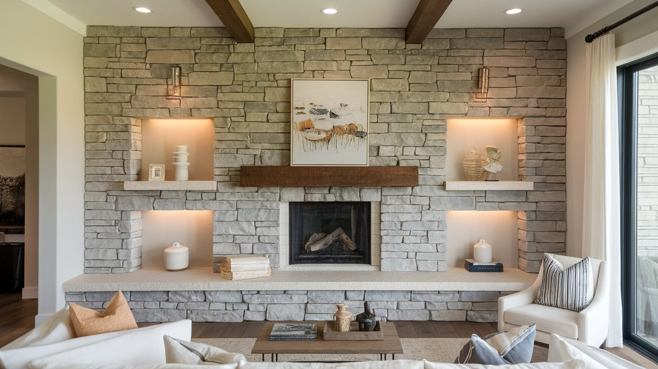 Small niches or shelves within your stone fireplace wall are great for showcasing art. These breaks in the stone add visual interest, giving you a chance to display personal pieces or change your decor seasonally.