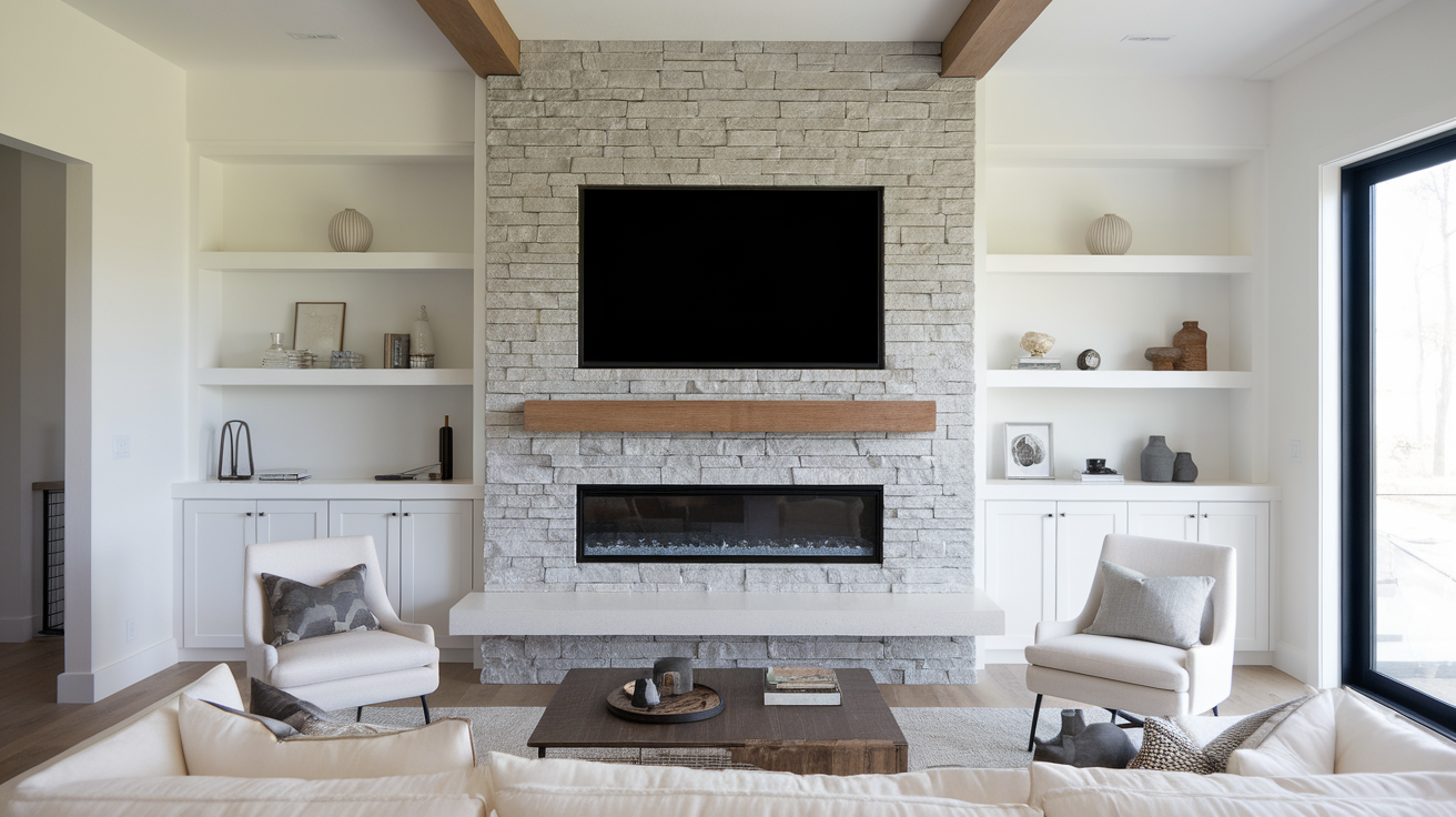 For a more integrated design, consider recessing the TV slightly into the stone for a smoother, cohesive appearance.