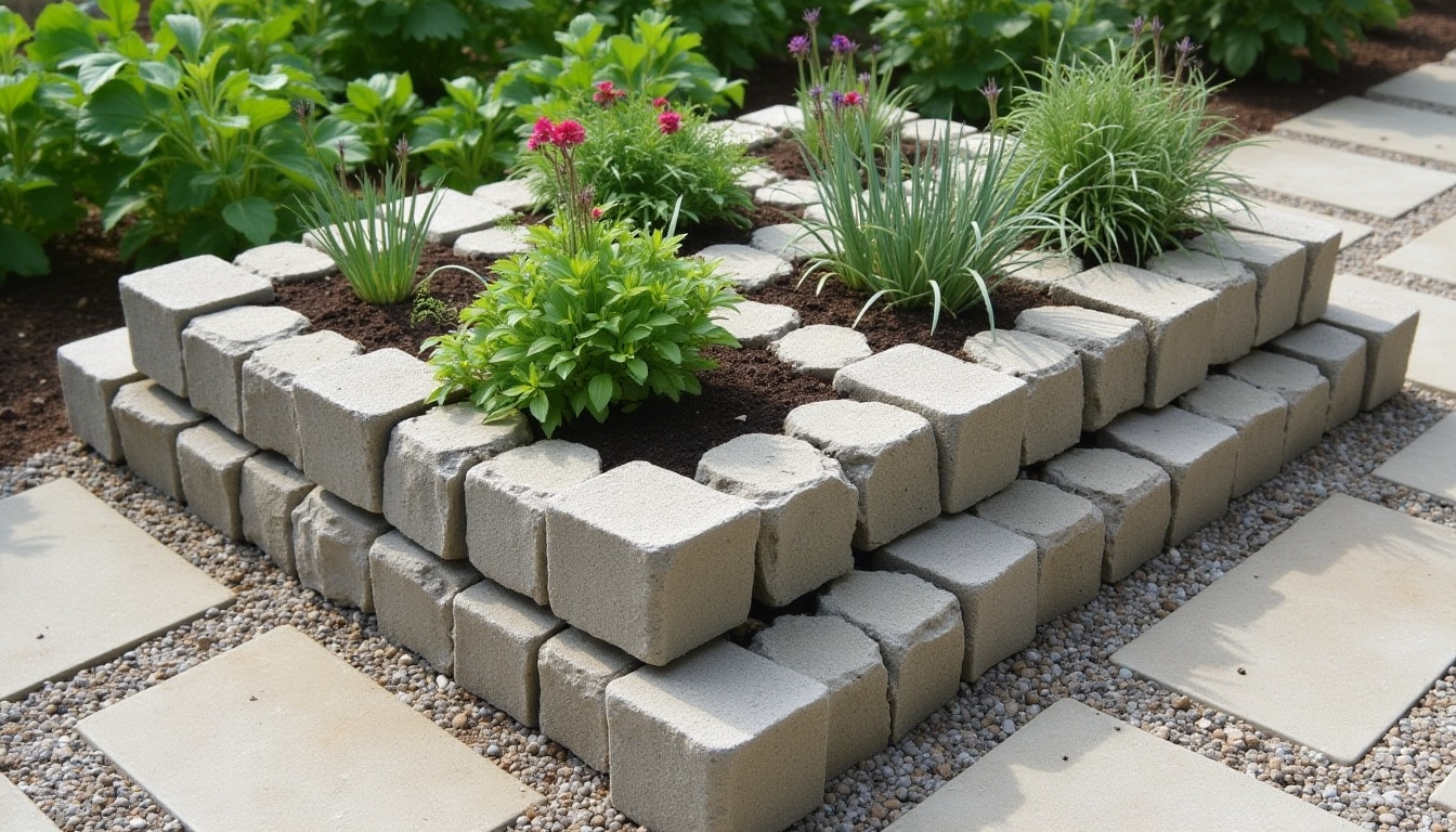 Transform inexpensive cinder blocks into a modern, industrial-style herb garden. Stack them in interesting patterns to create multiple planting pockets at varying heights. This design is durable, weather-resistant, and can be reconfigured as your garden needs change.