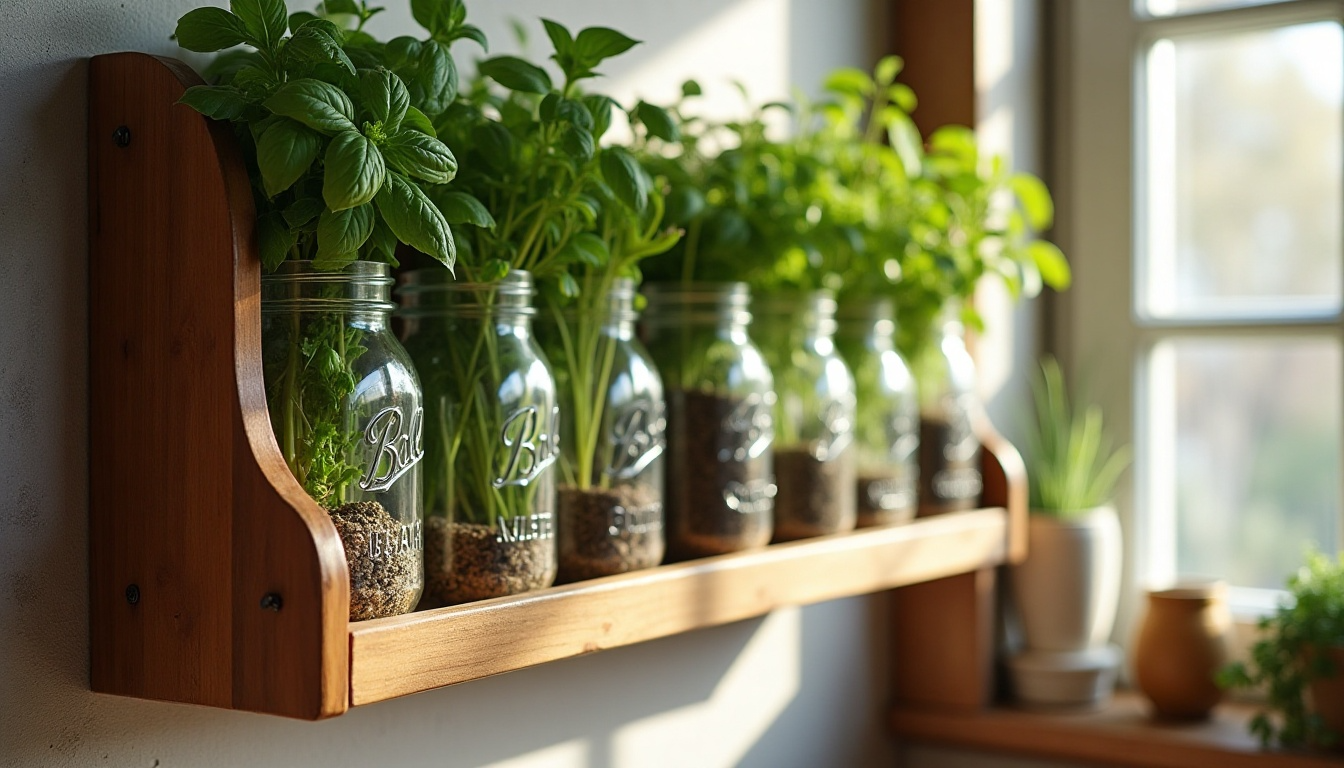 Create a charming and functional herb display with mason jars mounted on a wall rack. This Pinterest-worthy setup saves counter space while adding rustic appeal to your kitchen.