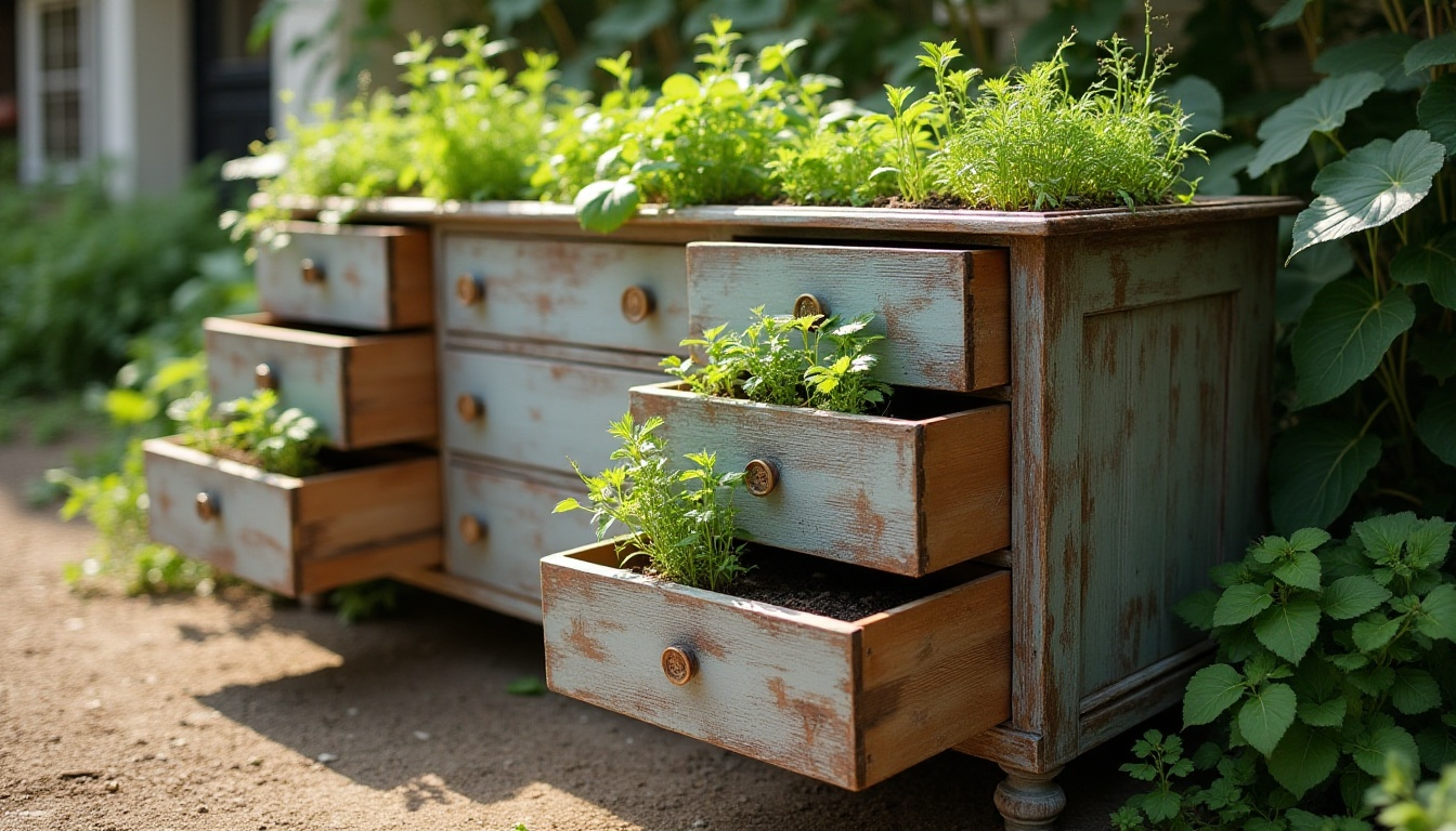Breathe new life into a discarded dresser by converting it into a multi-tiered herb garden. Remove or drill holes in drawer bottoms for drainage, then fill with herb-friendly soil.