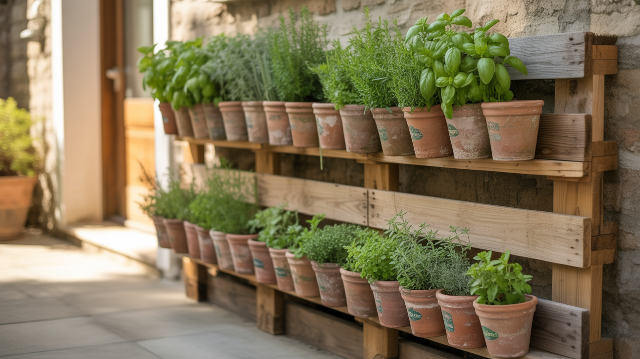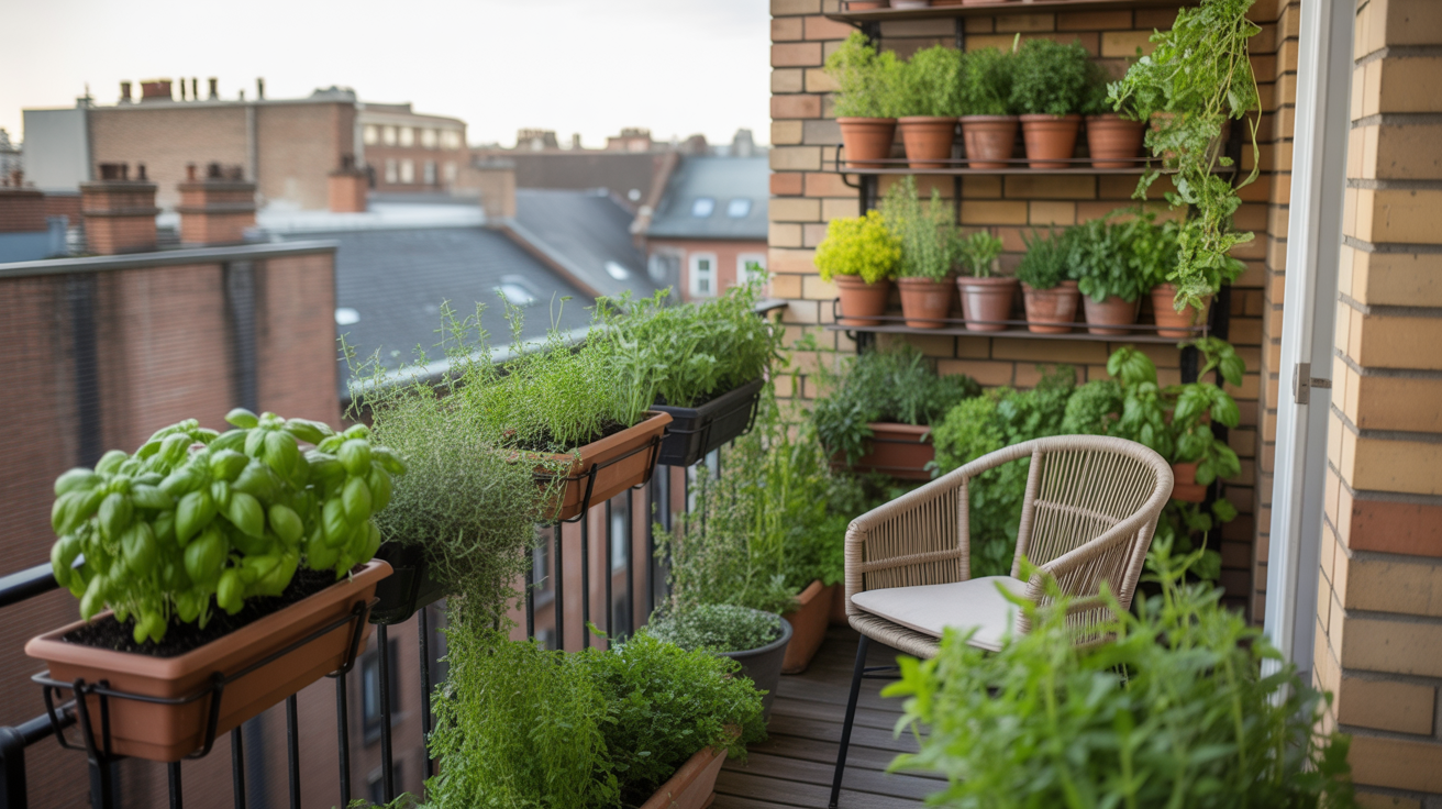 Vertical shelves are another smart way to stack your herbs without taking up too much room. Choose herbs that enjoy full sun, like basil or thyme, since balconies usually get good light.
