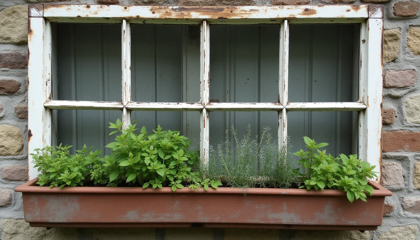 Repurpose old window frames into charming herb garden displays. Attach chicken wire or hardware cloth to the back to create planting pockets, or use the frame to showcase potted herbs. These versatile structures work well mounted on walls or as freestanding garden features.