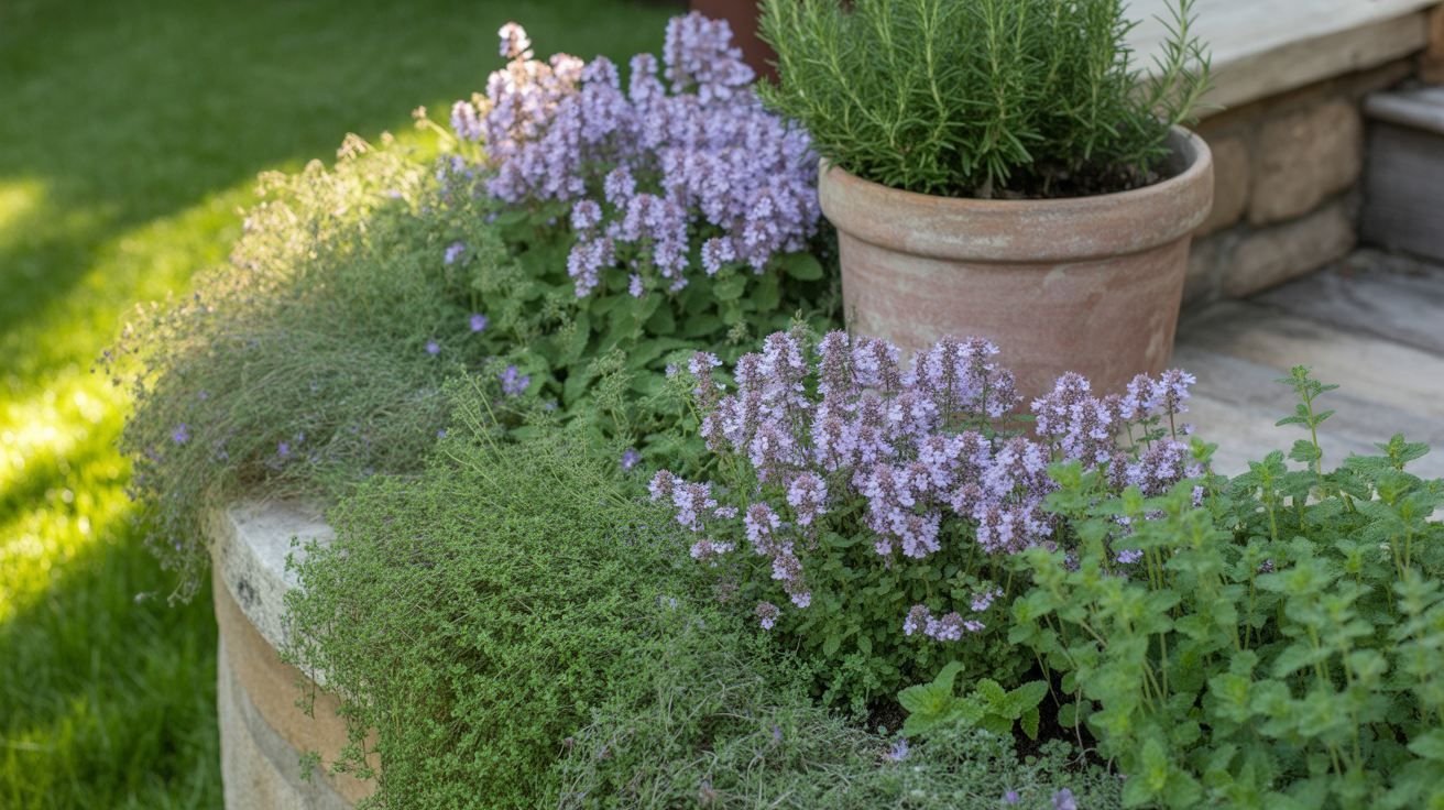Surround it with smaller herbs that fill in the gaps. This setup keeps your garden balanced and easy to care for while still looking great.