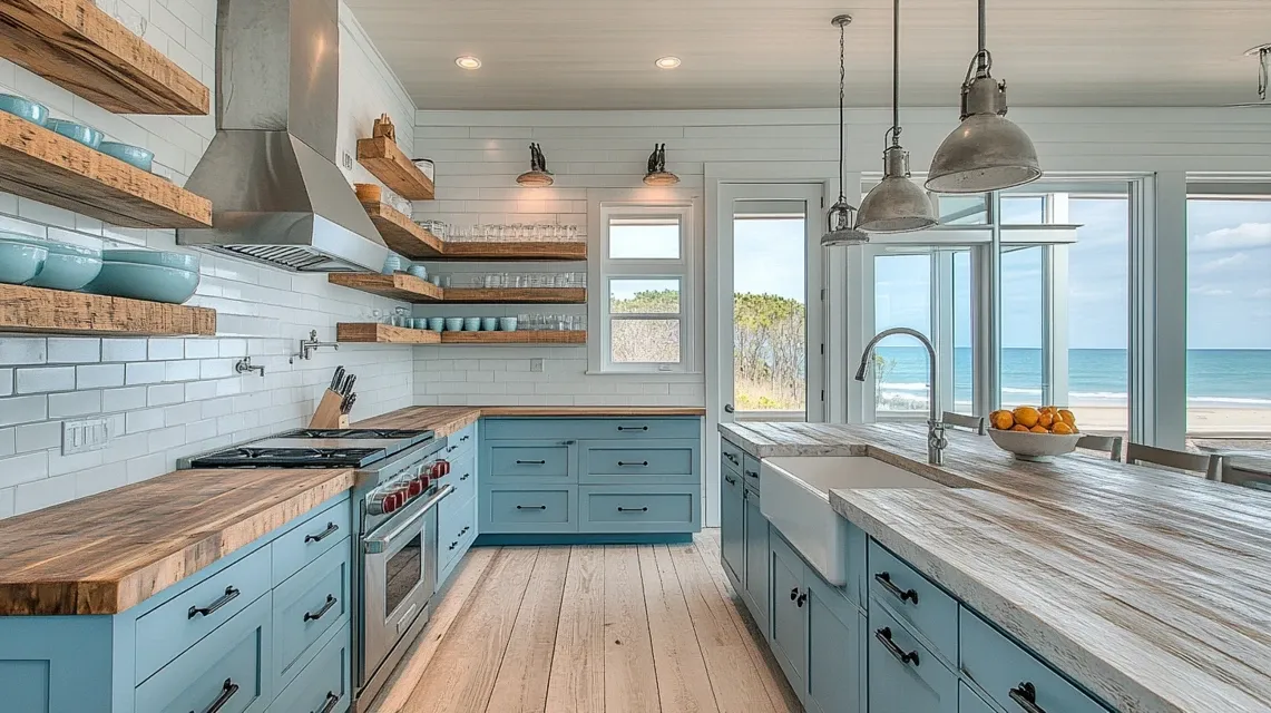 This combination works especially well for coastal homes or anyone who loves a bright, airy kitchen. It’s a simple way to create a peaceful place for cooking and relaxing. Add a few woven baskets or white dishes to complete the laid-back look.