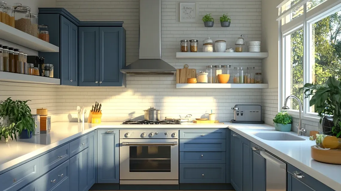 3. Overdoing the Blue: Covering every surface in blue can make the kitchen feel too heavy. It’s better to mix blue with other colors like white, beige, or light gray to keep the space feeling fresh and open.