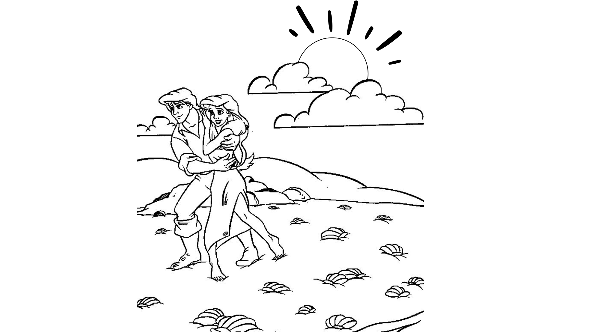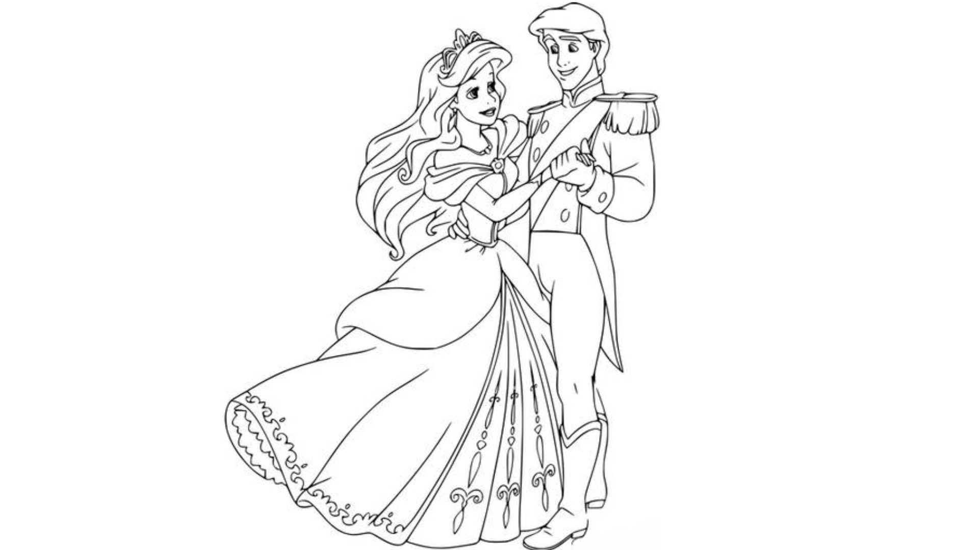 Shows them twirling on the sand. Will you color Eric in his royal outfit or casual clothes?