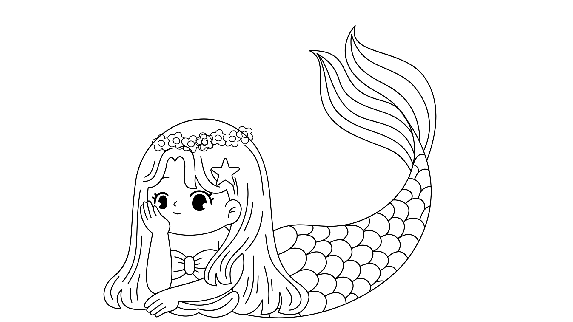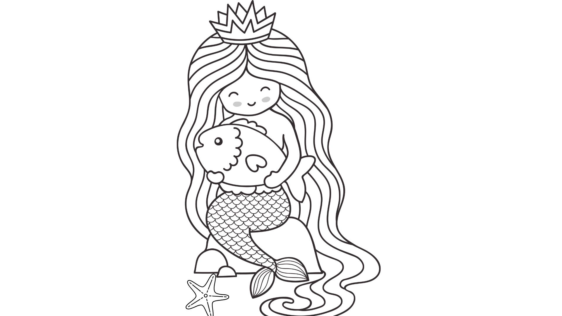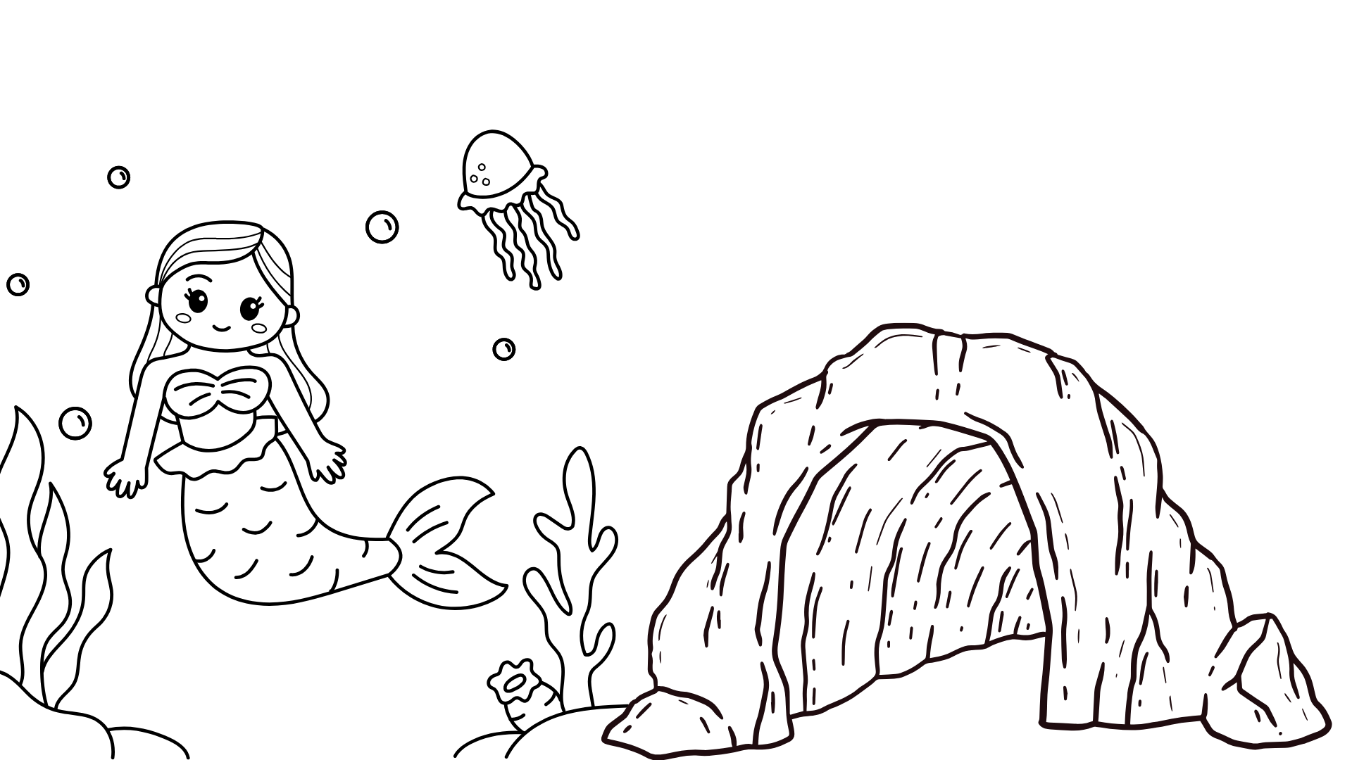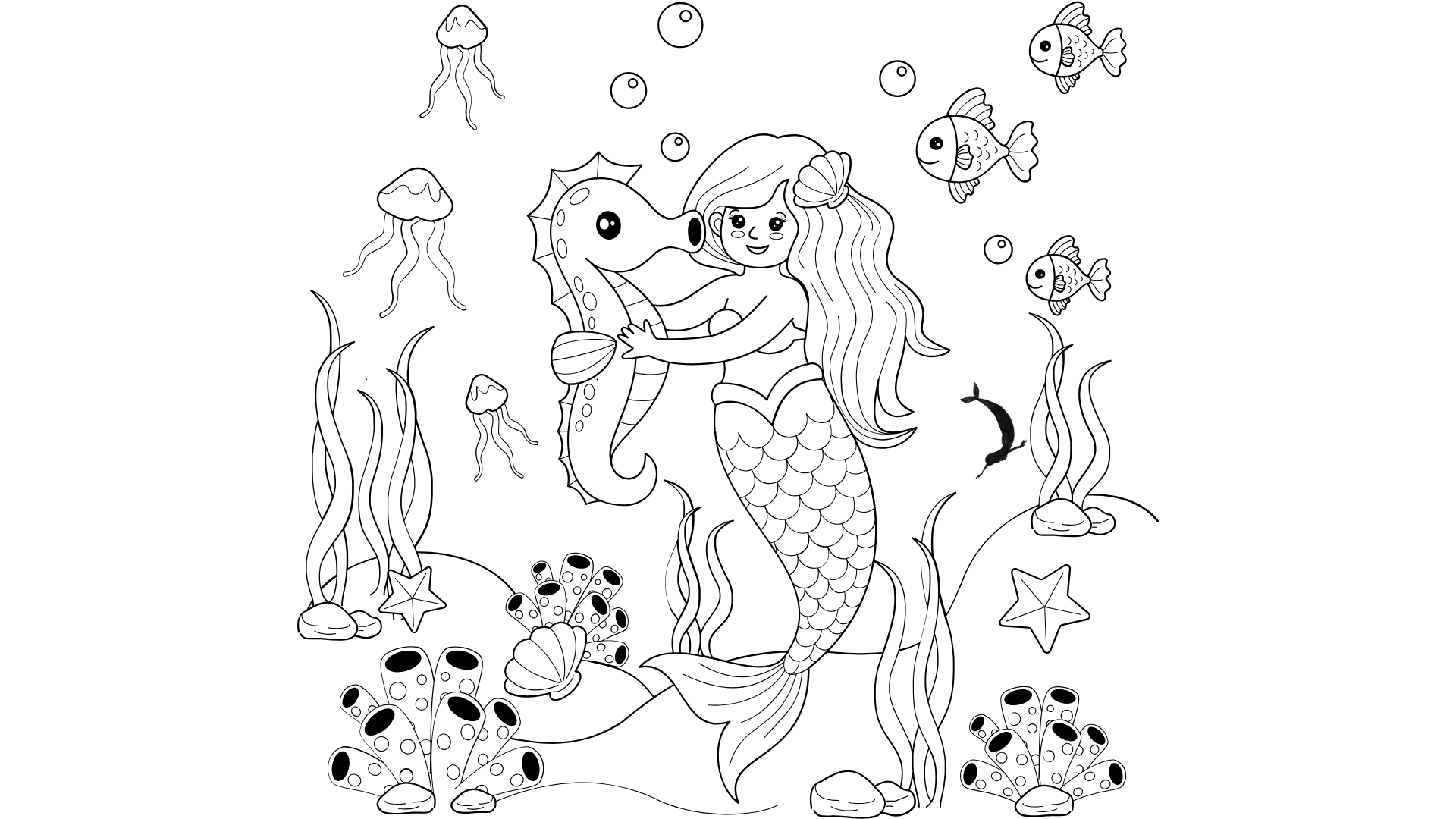 This scene offers a more artistic take on the mermaid. The outline style gives creative kids the freedom to add their own patterns and colors.
