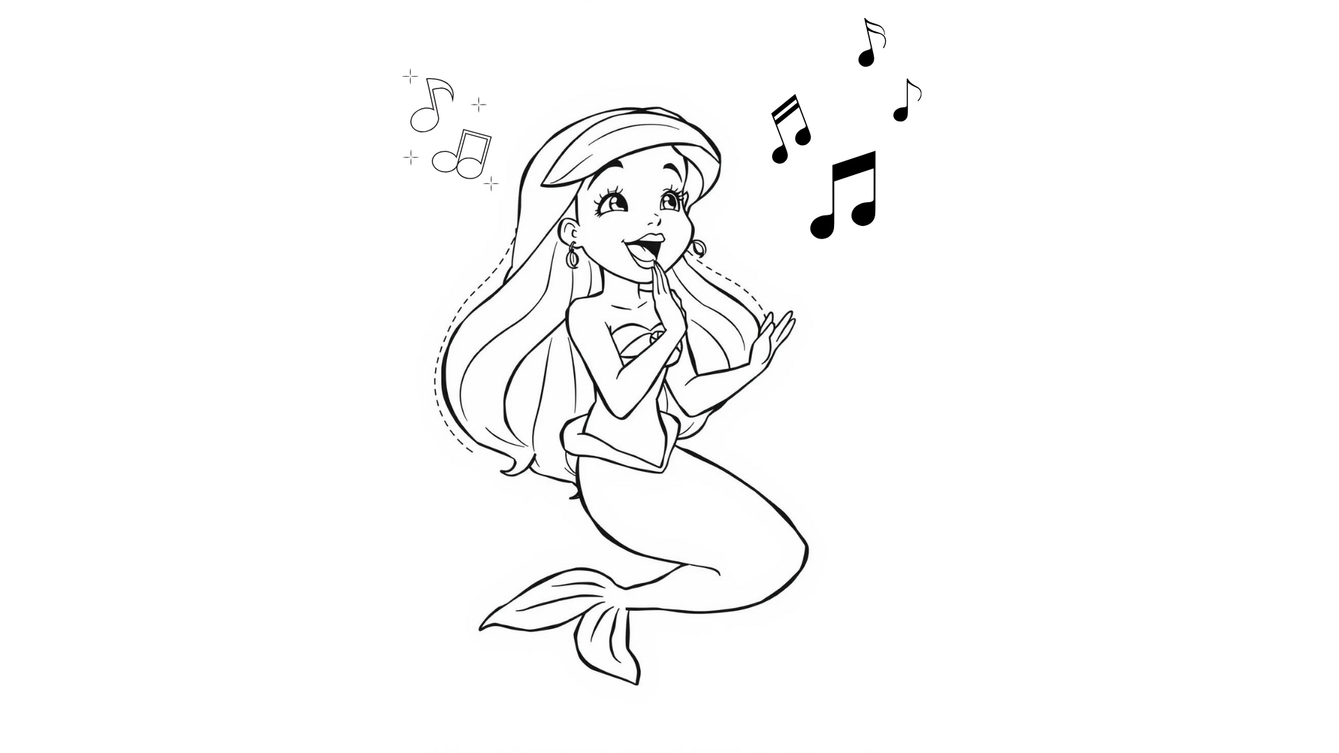 Shows our favorite mermaid singing with sparkly bubbles and musical notes floating all around her. Can you make the notes bright and colorful?