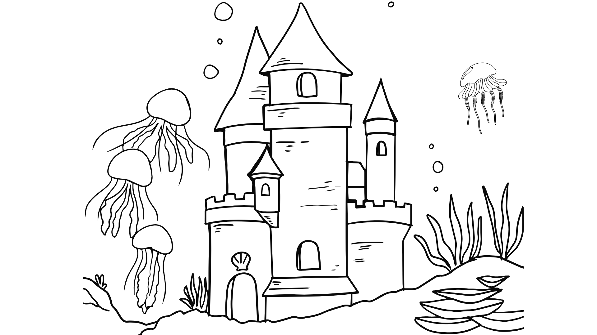 This page shows the amazing underwater palace where Ariel lives. It has lots of towers and coral details to fill with bright colors.