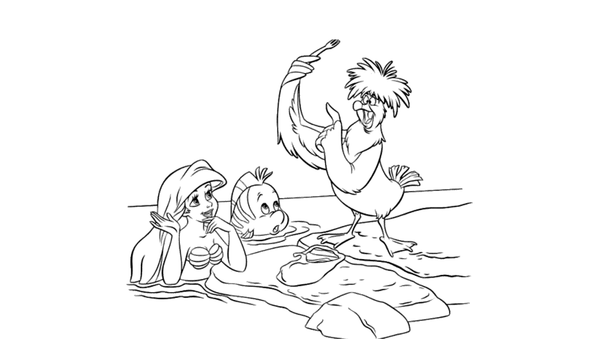 This scene captures the silly seagull showing off for Ariel. His wild moves and funny expressions will make kids giggle while coloring.