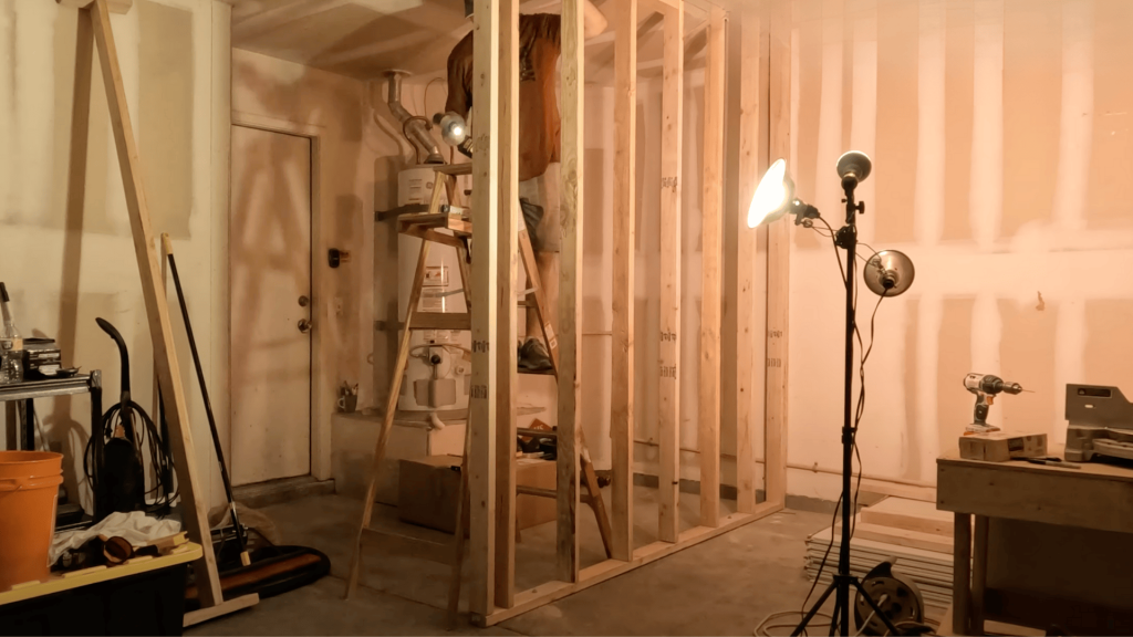 Frame the walls using 2x4s, making sure they are evenly spaced at 16 inches apart. Insulate the walls and seal gaps around windows, doors, and the garage door to improve energy efficiency and comfort.