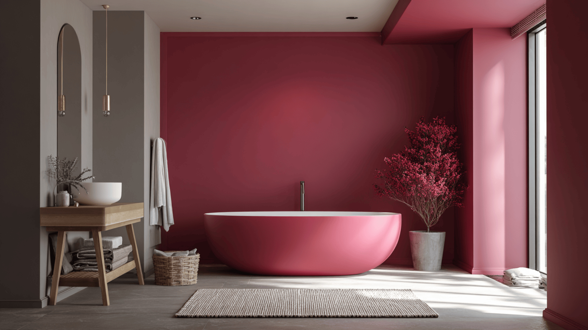 Bold pinks in a modern bathroom create a striking visual impact when paired with clean lines and minimalist furniture.