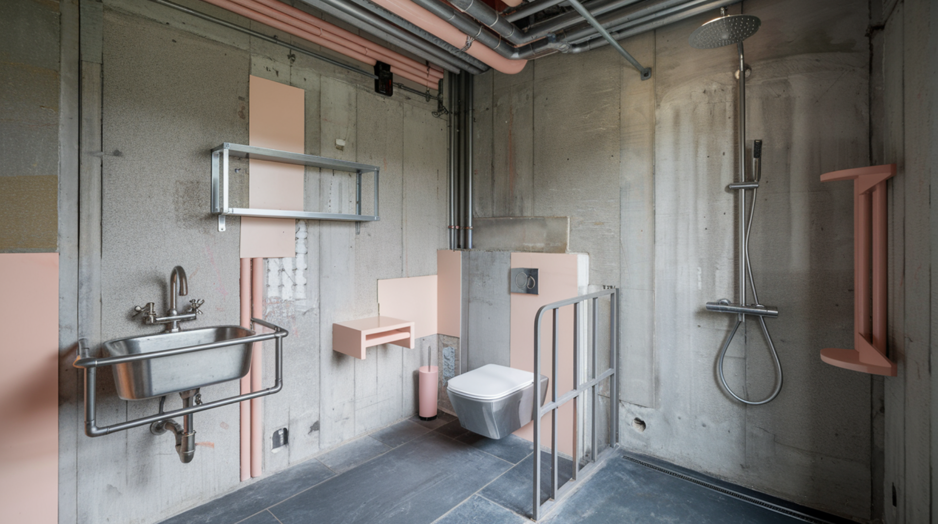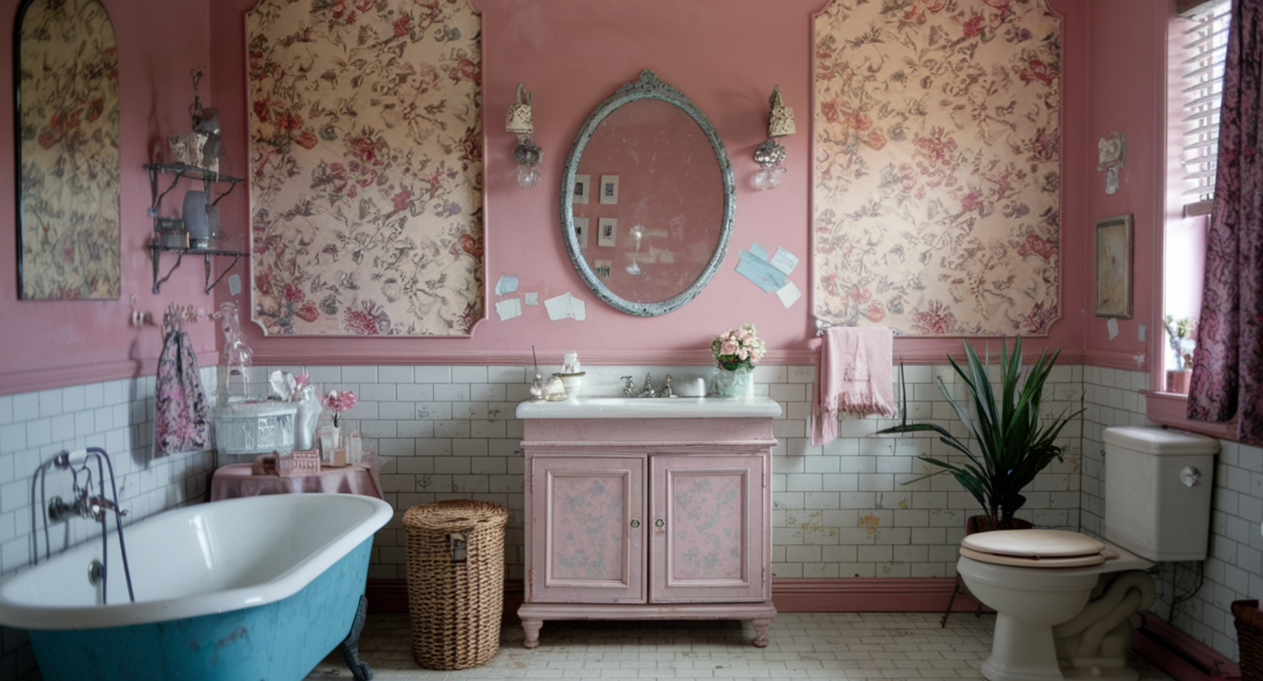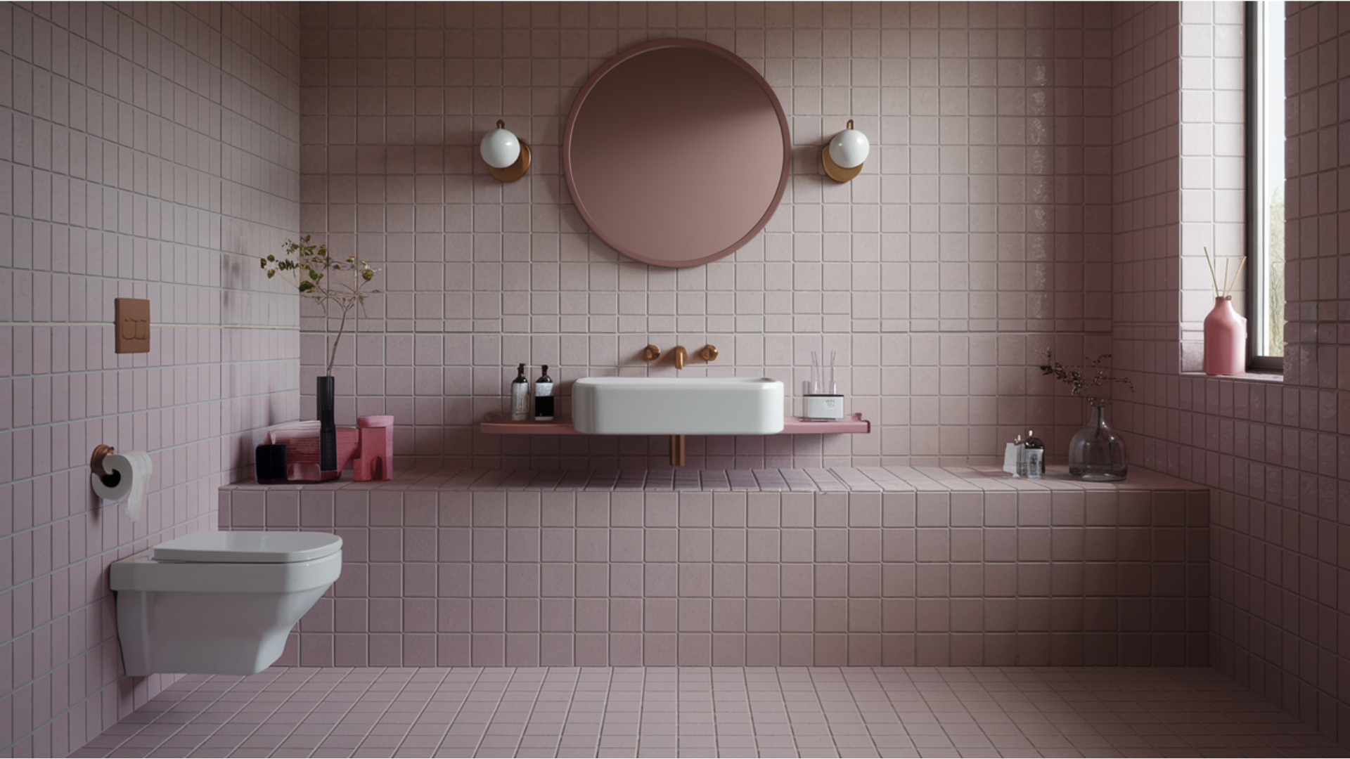In an industrial-style bathroom, soft pinks can soften the harshness of metal and concrete. Use muted pink tones to contrast with steel or exposed brick, creating a balanced, refined look.