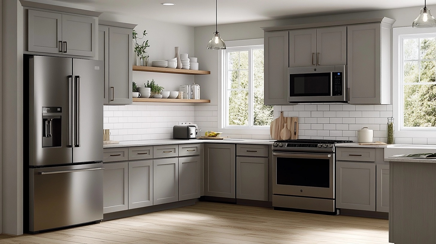 It creates a soft, neutral backdrop that makes a kitchen feel both current and classic. One big plus of greige is how well it fits in different kitchen styles.