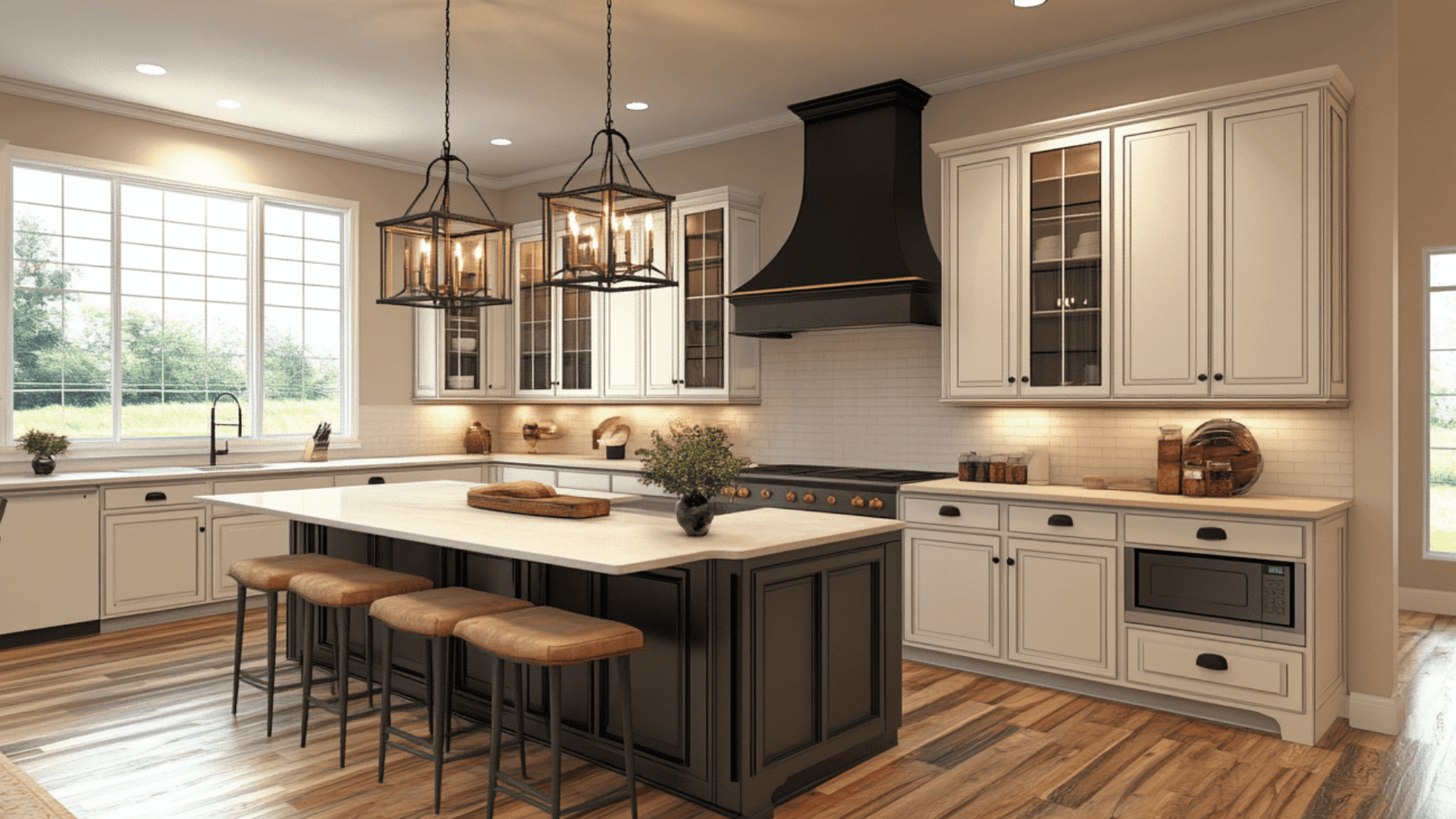 | Whites | Trim, backsplashes, ceiling, and upper cabinets | Creates clean contrast while maintaining warmth |