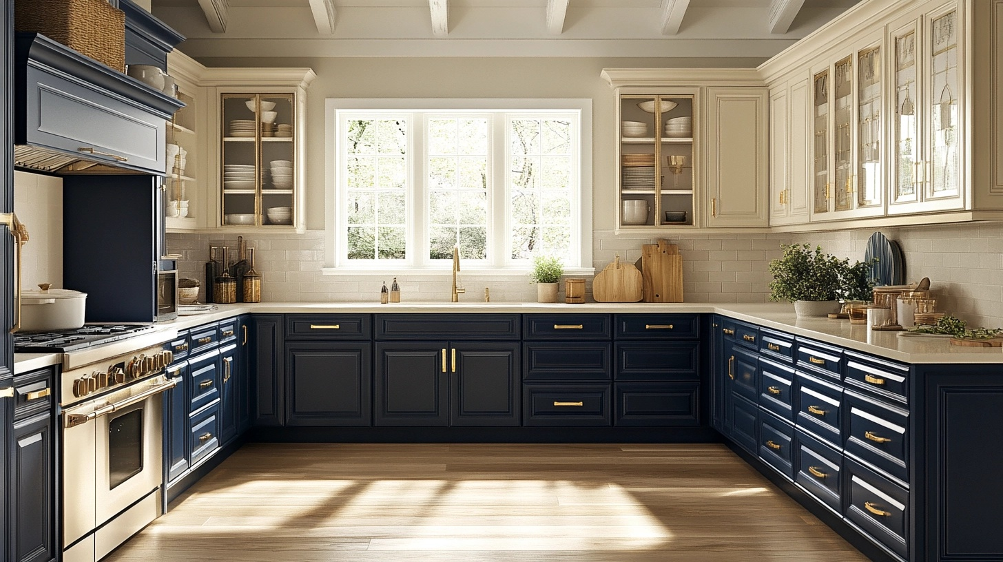 This works particularly well in larger kitchens where the two colors can be balanced across the space without making it feel choppy.