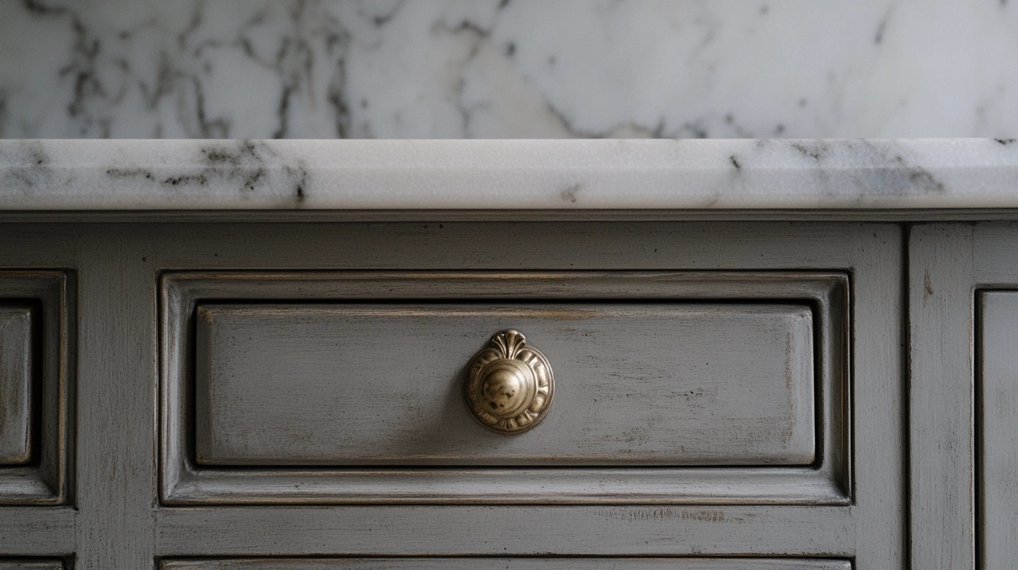 Pairing warm-toned greige cabinets with brass pulls and knobs creates a rich, welcoming feel. The metals shine against the neutral backdrop, adding just enough glow without being showy.