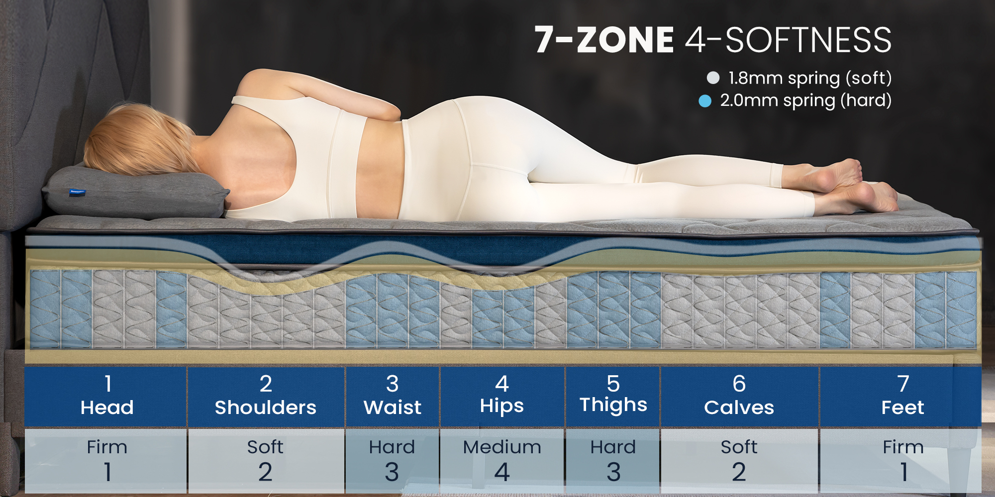 - 7-Zone Targeted Support: Promotes perfect spinal alignment by supporting every part of your body uniquely.