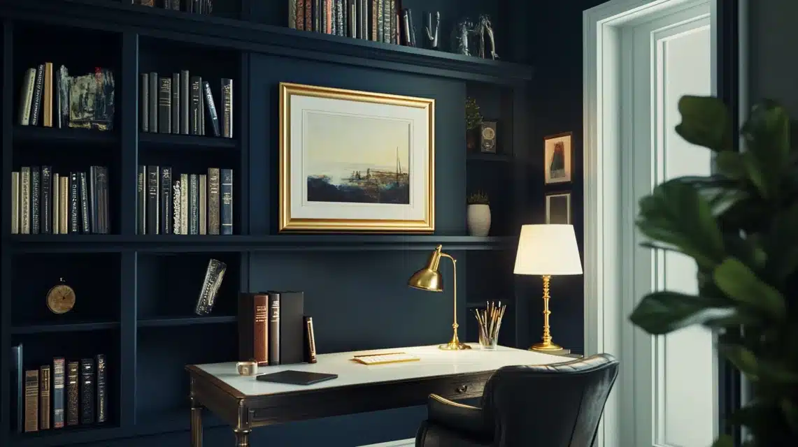 I painted the wall behind his desk in Hale Navy, creating a perfect video conference backdrop that draws constant compliments from his colleagues.