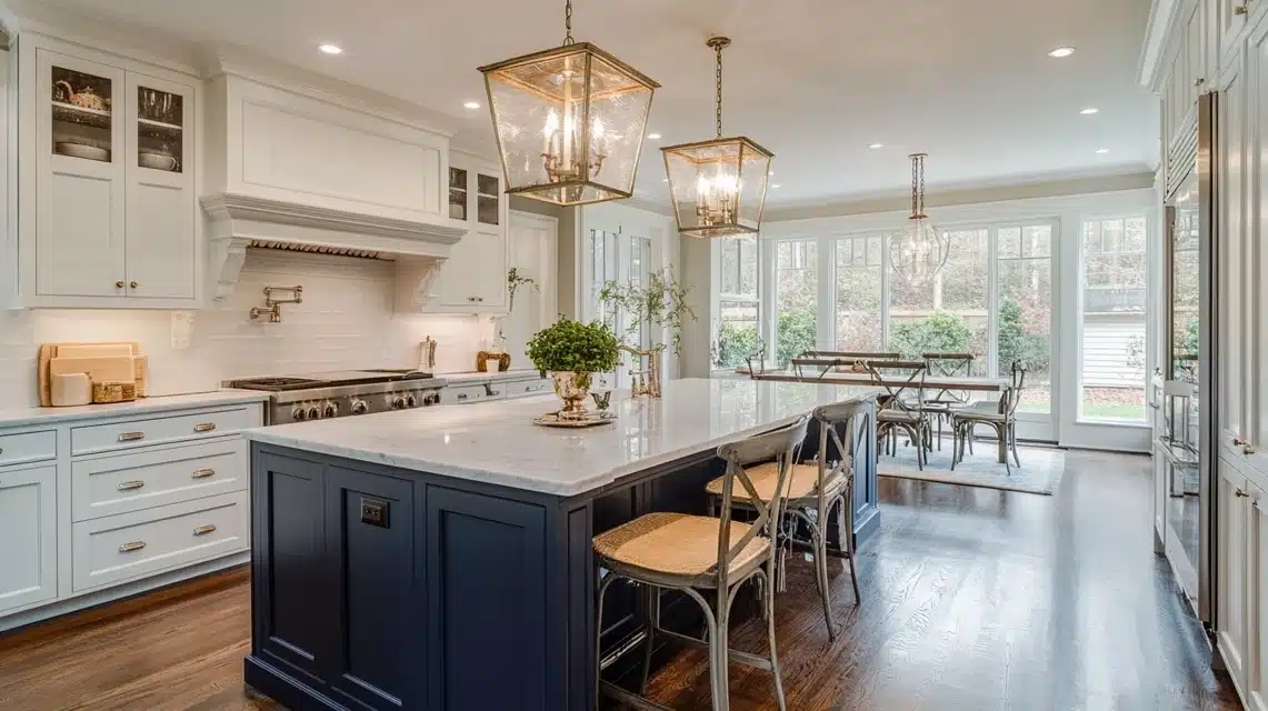 The contrast between the navy island and my white perimeter cabinets creates this beautiful tension that makes the kitchen feel more intentional and designed.