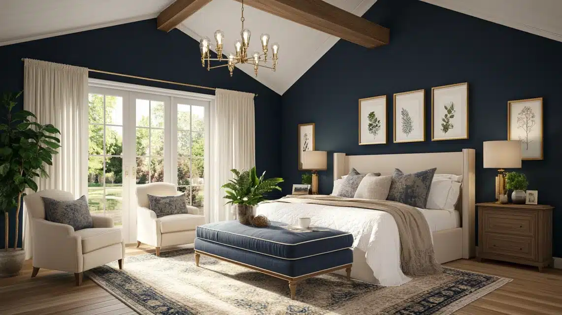 In my master bedroom, I used Hale Navy on just one wall behind the bed, and it’s like having a luxury hotel suite at home.