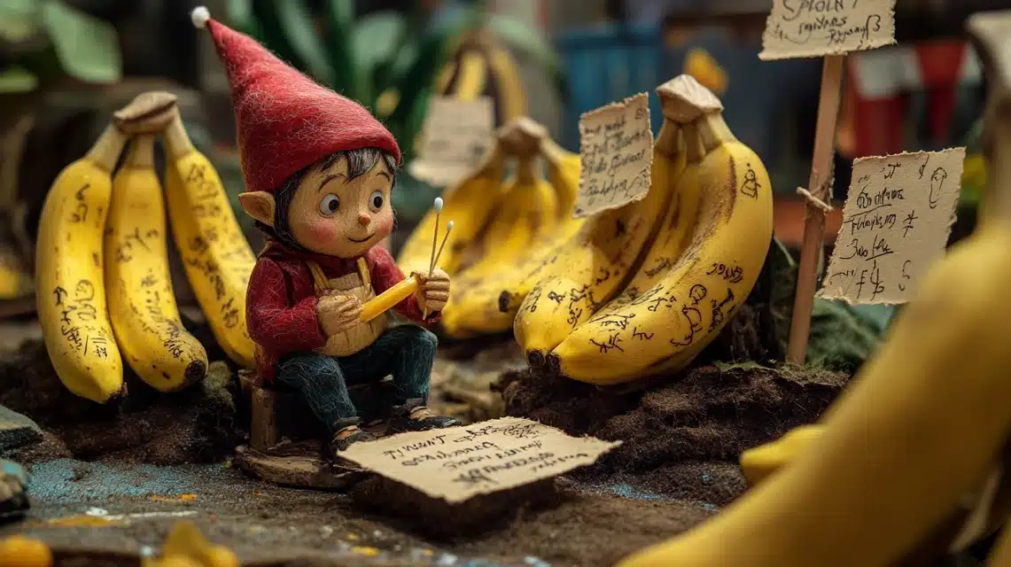 Each banana features tiny faces and messages carefully etched by our artistic elf.
