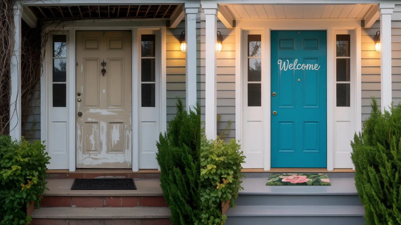 What Changed: The front door was painted a warm color. We cut overgrown plants and added new ones near the steps. A welcome mat and some outdoor lighting made it feel friendly. Everything was swept, trimmed, and cleaned up for a fresh look.