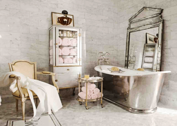 - Mix and match the white color furniture, like a Bathtub or dressing table, with vintage looks.