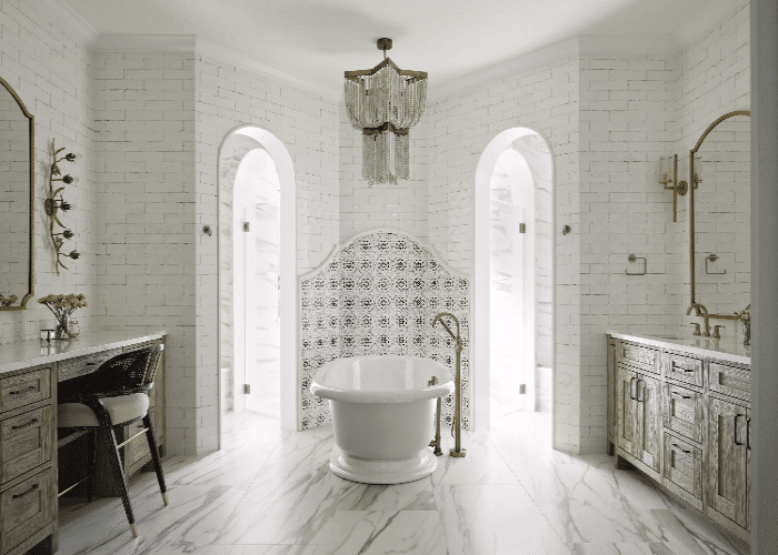 - Bring the brass or gold accents if the bathroom is in the whitewash.