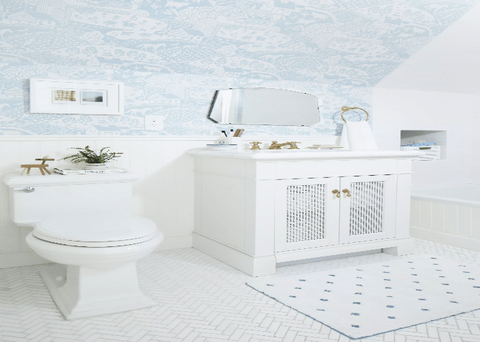 This wallpaper brings charming vibes to the bathroom and adds a French country style, making it chic. The toile wallpaper is not about one specific pattern. It comes with various designs according to the different interior designs, maintaining the touch of French country style in your bathroom or interior.