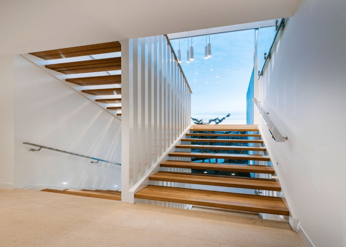 Make the most of sunlight to naturally illuminate your staircase. Floor-to-ceiling windows at stairway ends let light flood in. Skylights and clerestory windows overhead also brighten upstairs.