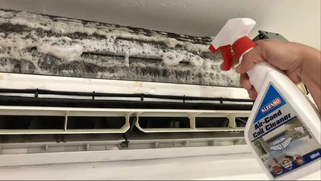 Remove the filter and either wash it with a mild detergent or replace it, depending on its condition. Clean the evaporator coils gently using a coil cleaner and a soft brush to remove stubborn dirt.