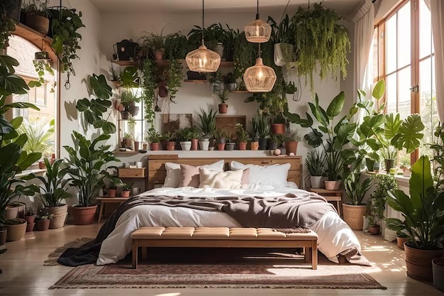 If you are crazy about plants and call yourself a plant parent, the bohemian decor is for you! The natural shades of green brighten up any room and add a jungle vibe. The more plants you add to your living space, the more you make it boho-themed.