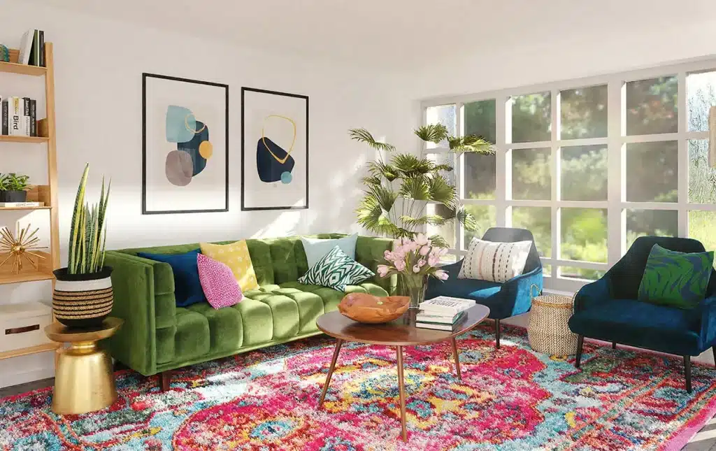 Colors are the third-most important feature of modern bohemian decor. Unlike minimalist neutrals, bohemian colors are loud and vibrant.