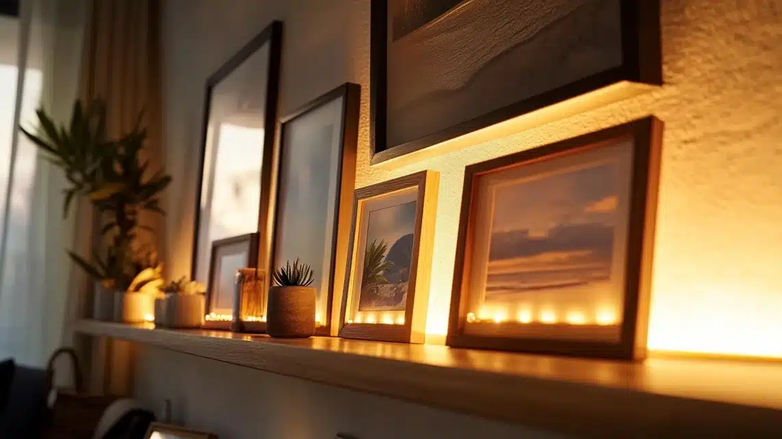 - Putting small battery-operated spotlights behind certain frames ($10-15)
