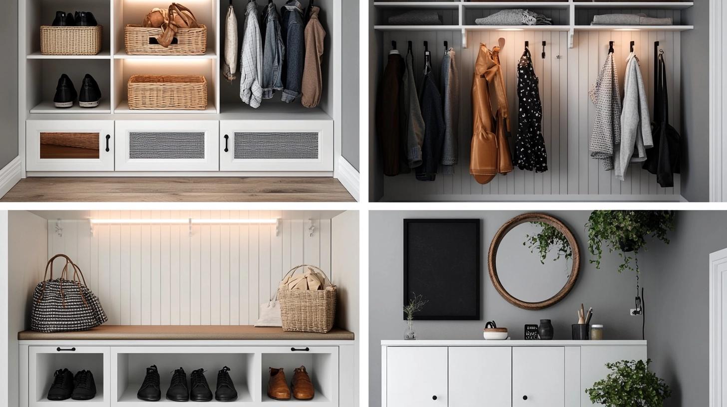 It usually includes a bench for sitting, hooks for coats and bags, and cubbies or shelves for shoes and storage. It keeps your entrance tidy and makes coming and going easier.