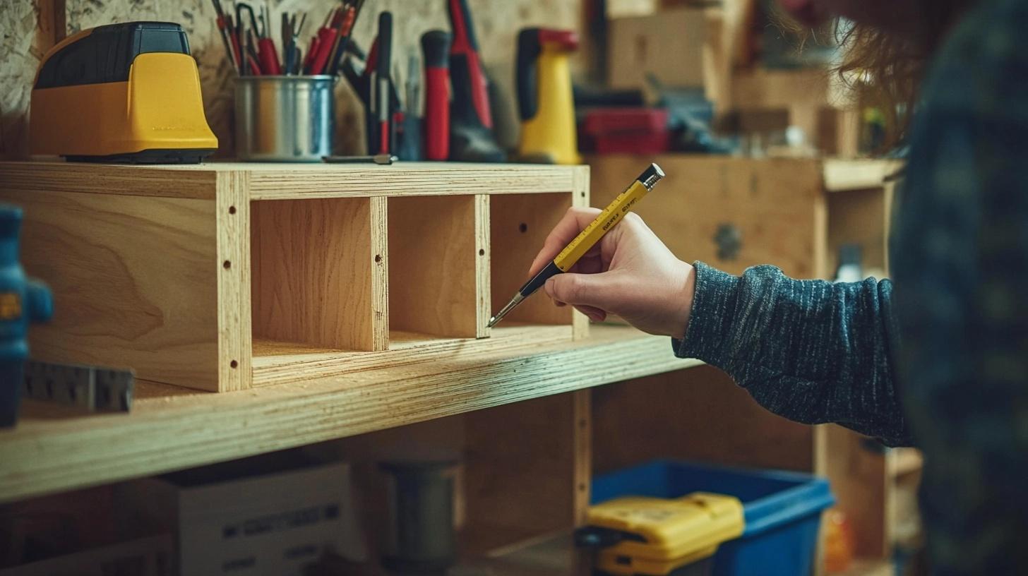 Now add storage parts like shelves, cubbies, or drawers. Measure and cut small boards to divide the space under the bench or on the back panel.