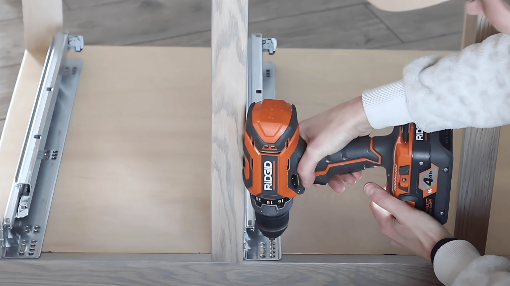 Attach soft-close hinges to the doors, ensuring they remain flush with the rest of the panels. Add final touches, such as drawer pulls, handles, and any additional storage organizers.