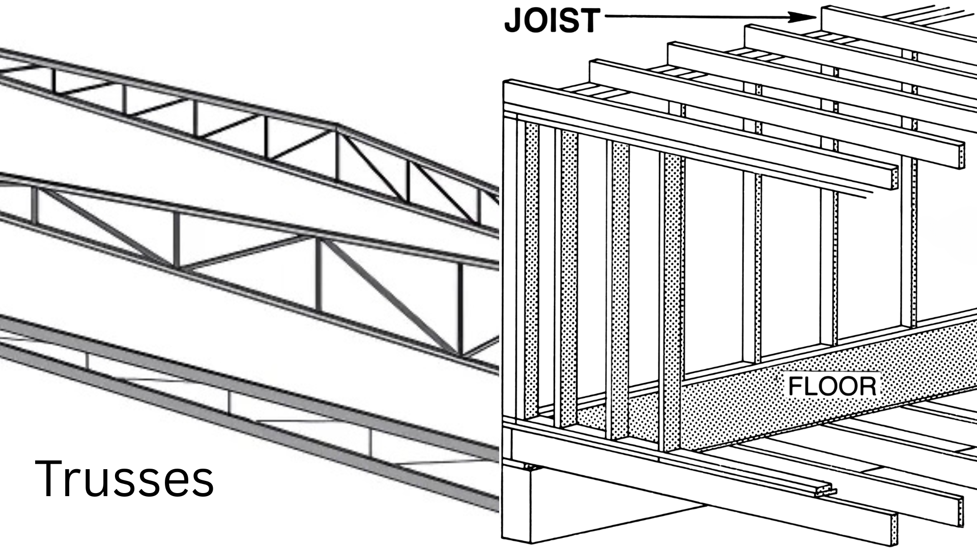 Quick Comparison: Rafters vs. Trusses vs. Joists