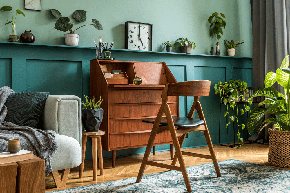 Incorporating multi-functional furniture is a smart solution to create a small, organic, modern living room. Foldable tables, storage ottomans, sofa beds, etc., minimize clutter and create an illusion of openness. This multi-functional furniture transforms from one function to another function by eliminating the need for excess furniture. Accent and vintage chairs with long wooden legs make the most of the limited square footage and foster the illusion of more ground space.
